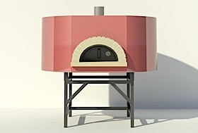 Gas/Wood model includes the fully-assembled, fully-insulated oven with red metal enclosure and decorative brick arch, metal stand, steel door, thermometer, and gas burner with electronic control panel. Specify LP or natural gas.